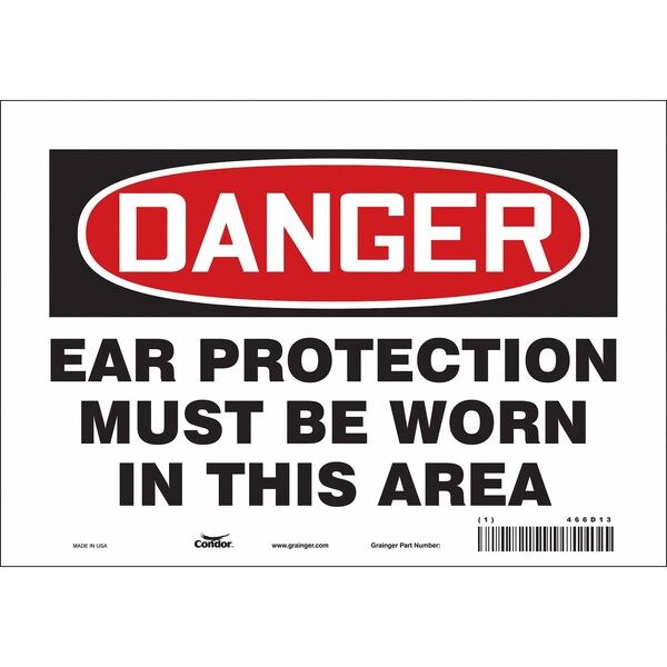 Safety Sign, Vertical Rectangle, Number of Printed Sides 1, English, Sign Format Traditional OSHA, Sign Legend Ear Protection Must Be Worn In This Area, Sign Legend Background Color White, Sign Legend Style Text