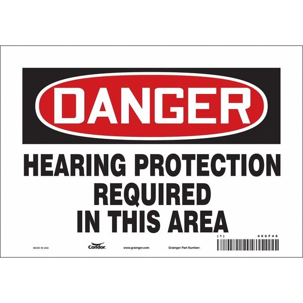 Safety Sign, Vertical Rectangle, Number of Printed Sides 1, English, Sign Format Traditional OSHA, Sign Legend Hearing Protection Required In This Area, Sign Legend Background Color White, Sign Legend Style Text