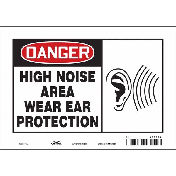 Safety Sign, Vertical Rectangle, Number of Printed Sides 1, English, Sign Format Traditional OSHA, Sign Legend High Noise Area Wear Ear Protection, Sign Legend Background Color White, Sign Legend Style Symbol and Text