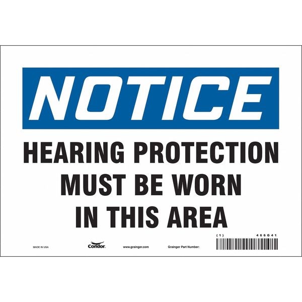 Safety Sign, Vertical Rectangle, Number of Printed Sides 1, English, Sign Format Traditional OSHA, Sign Legend Hearing Protection Must Be Worn In This Area, Sign Legend Background Color White, Sign Legend Style Text