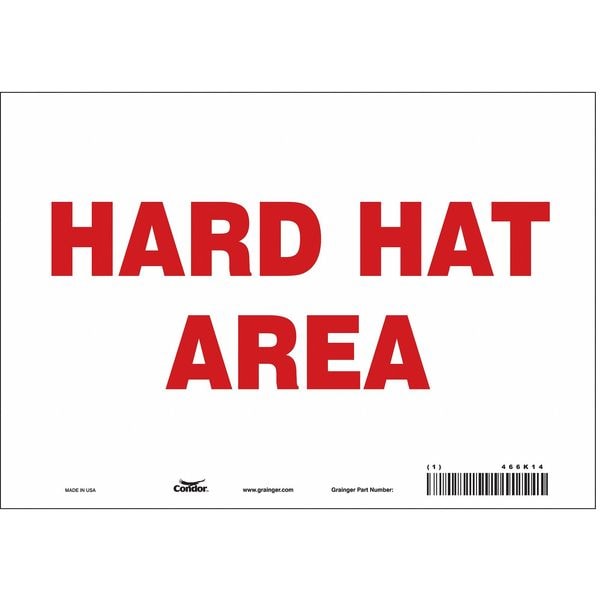 Safety Sign, Vertical Rectangle, Number of Printed Sides 1, English, Sign Format Other Format, Sign Legend Hard Hat Area, Sign Legend Background Color White, Sign Legend Style Text