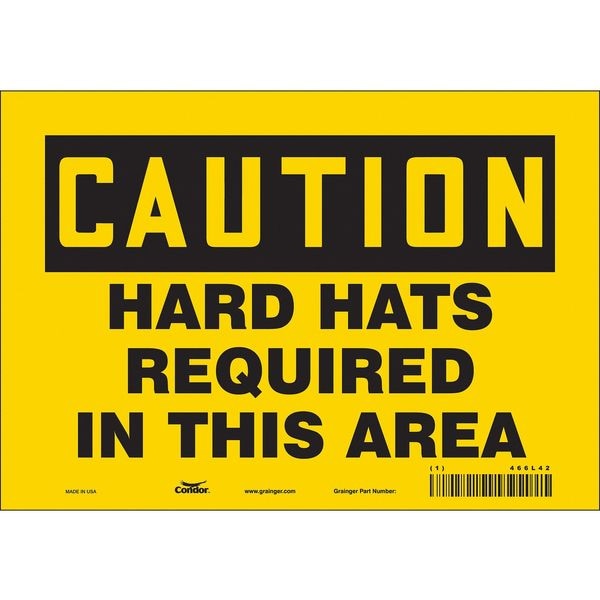 Safety Sign, Vertical Rectangle, Number of Printed Sides 1, English, Sign Format Traditional OSHA, Sign Legend Hard Hats Required In This Area, Sign Legend Background Color Yellow, Sign Legend Style Text