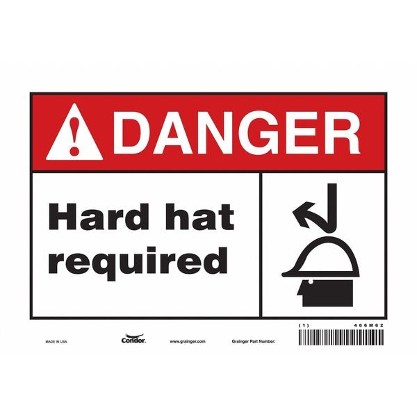 Safety Sign, Vertical Rectangle, Number of Printed Sides 1, English, Sign Format ANSI/OSHA Format, Sign Legend Hard Hat Required, Sign Legend Background Color White, Sign Legend Style Symbol and Text