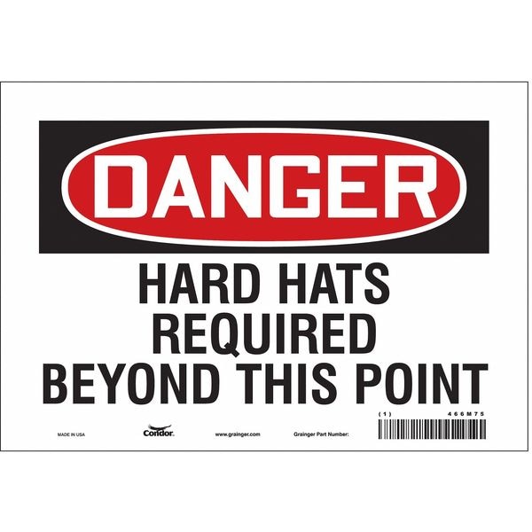 Safety Sign, Vertical Rectangle, Number of Printed Sides 1, English, Sign Format Traditional OSHA, Sign Legend Hard Hats Required Beyond This Point, Sign Legend Background Color White, Sign Legend Style Text