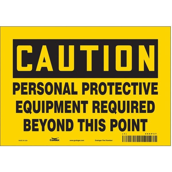 Safety Sign, Vertical Rectangle, Number of Printed Sides 1, English, Sign Format Traditional OSHA, Sign Legend Personal Protective Equipment Required Beyond This Point, Sign Legend Background Color Yellow, Sign Legend Style Text