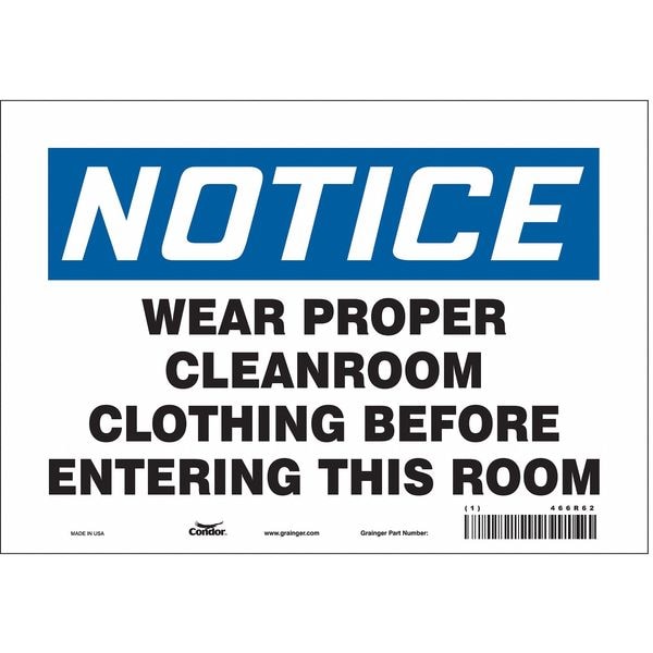 Safety Sign, Vertical Rectangle, Number of Printed Sides 1, English, Sign Format Traditional OSHA, Sign Legend Wear Proper Cleanroom Clothing Before Entering This Room, Sign Legend Background Color White, Sign Legend Style Text