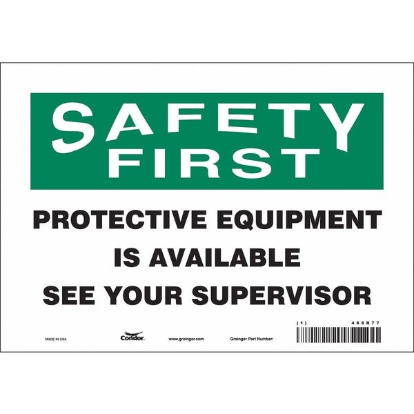 Safety Sign, Vertical Rectangle, Number of Printed Sides 1, English, Sign Format Traditional OSHA, Sign Legend Protective Equipment Is Available See Your Supervisor, Sign Legend Background Color White, Sign Legend Style Text