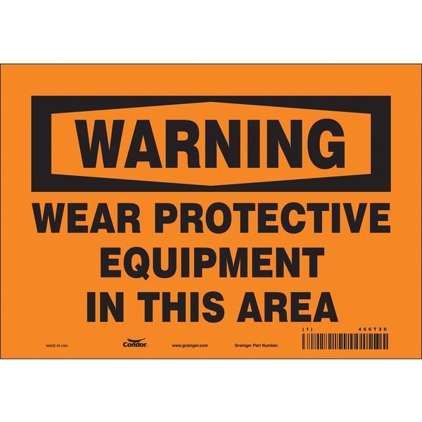 Safety Sign, Vertical Rectangle, Number of Printed Sides 1, English, Sign Format Traditional OSHA, Sign Legend Wear Protective Equipment In This Area, Sign Legend Background Color Orange, Sign Legend Style Text