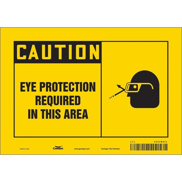 Safety Sign, Vertical Rectangle, Number of Printed Sides 1, English, Sign Format Traditional OSHA, Sign Legend Eye Protection Required In This Area, Sign Legend Background Color Yellow, Sign Legend Style Symbol and Text