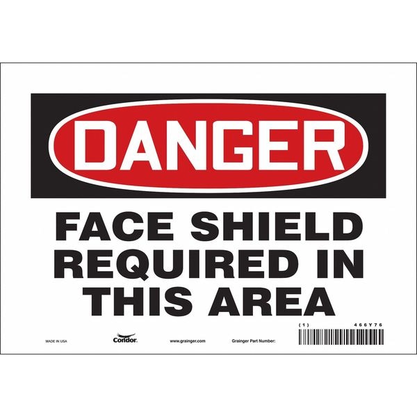 Safety Sign, Vertical Rectangle, Number of Printed Sides 1, English, Sign Format Traditional OSHA, Sign Legend Face Shield Required In This Area, Sign Legend Background Color White, Sign Legend Style Text
