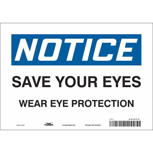 Safety Sign, Vertical Rectangle, Number of Printed Sides 1, English, Sign Format Traditional OSHA, Sign Legend Save Your Eyes Wear Eye Protection, Sign Legend Background Color White, Sign Legend Style Text