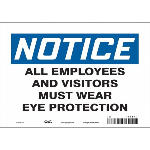 Safety Sign, Vertical Rectangle, Number of Printed Sides 1, English, Sign Format Traditional OSHA, Sign Legend All Employees And Visitors Must Wear Eye Protection, Sign Legend Background Color White, Sign Legend Style Text