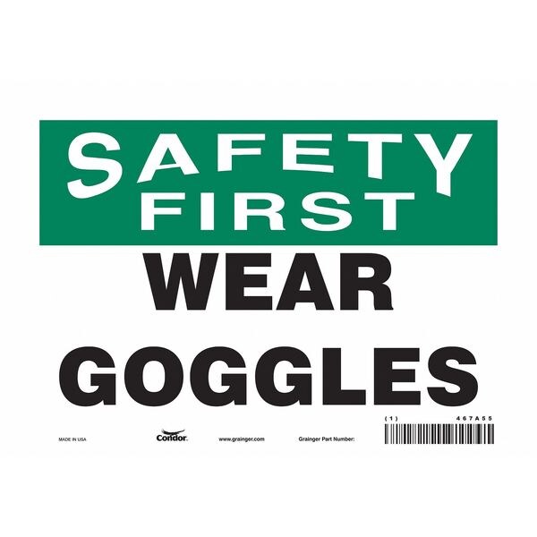 Safety Sign, Vertical Rectangle, Number of Printed Sides 1, English, Sign Format Traditional OSHA, Sign Legend Wear Goggles, Sign Legend Background Color White, Sign Legend Style Text