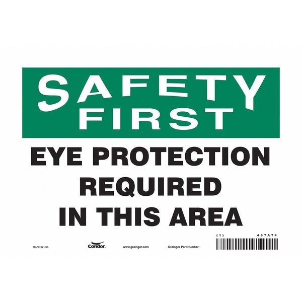 Safety Sign, Vertical Rectangle, Number of Printed Sides 1, English, Sign Format Traditional OSHA, Sign Legend Eye Protection Required In This Area, Sign Legend Background Color White, Sign Legend Style Text