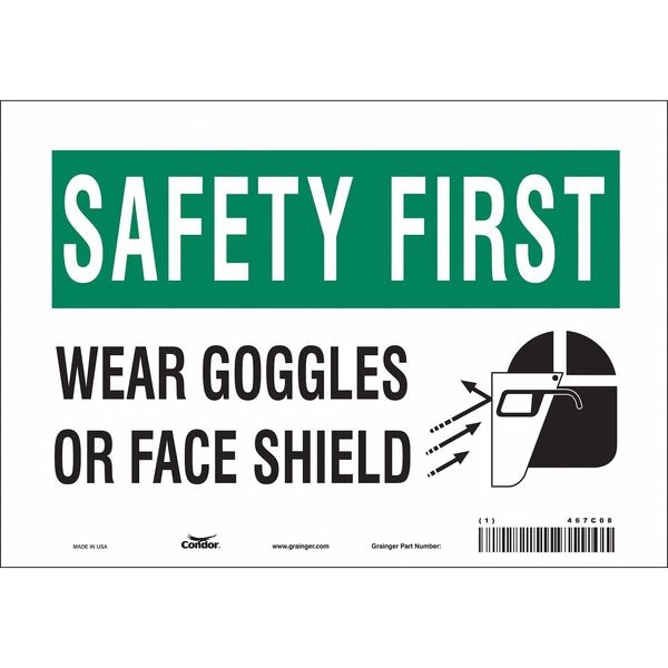 Safety Sign, Vertical Rectangle, Number of Printed Sides 1, English, Sign Format Traditional OSHA, Sign Legend Wear Goggles Or Face Shield, Sign Legend Background Color White, Sign Legend Style Symbol and Text
