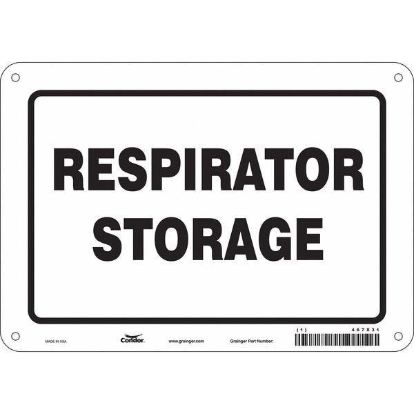 Safety Sign, Vertical Rectangle, Number of Printed Sides 1, English, Sign Format Other Format, Sign Legend Respirator Storage, Sign Legend Background Color White, Sign Legend Style Text