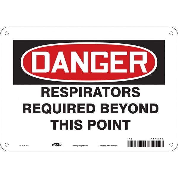 Safety Sign, Vertical Rectangle, Number of Printed Sides 1, English, Sign Format Traditional OSHA, Sign Legend Respirators Required Beyond This Point, Sign Legend Background Color White, Sign Legend Style Text