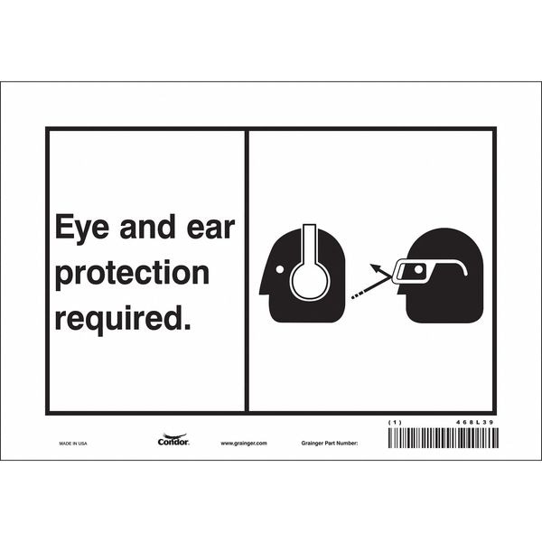 Safety Sign, Vertical Rectangle, Number of Printed Sides 1, English, Sign Format Other Format, Sign Legend Eye And Ear Protection Required., Sign Legend Background Color White, Sign Legend Style Symbol and Text