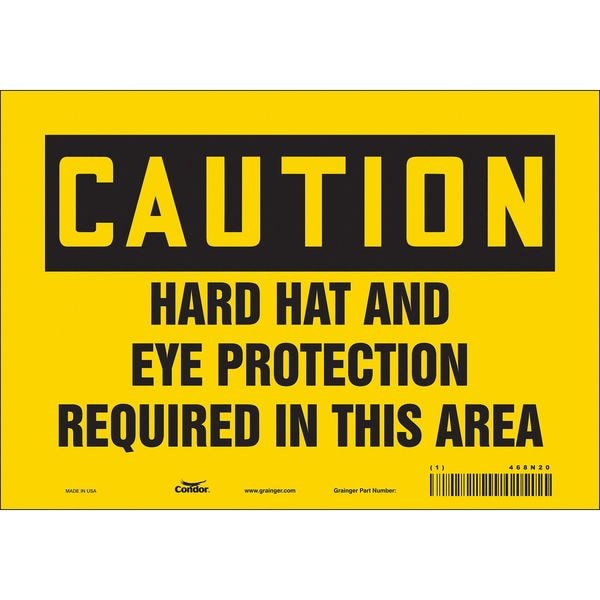 Safety Sign, Vertical Rectangle, Number of Printed Sides 1, English, Sign Format Traditional OSHA, Sign Legend Hard Hat And Eye Protection Required In This Area, Sign Legend Background Color Yellow, Sign Legend Style Text