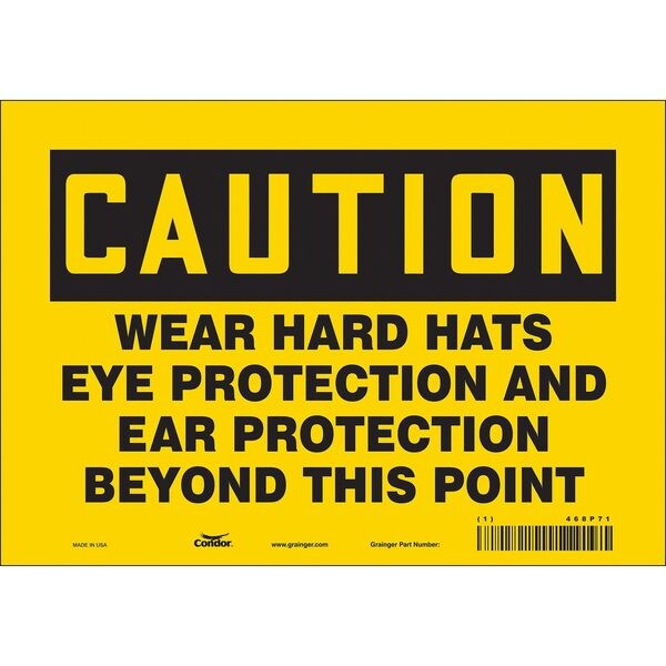 Safety Sign, Vertical Rectangle, Number of Printed Sides 1, English, Sign Format Traditional OSHA, Sign Legend Wear Hard Hats Eye Protection And Ear Protection Beyond This Point, Sign Legend Background Color Yellow, Sign Legend Style Text