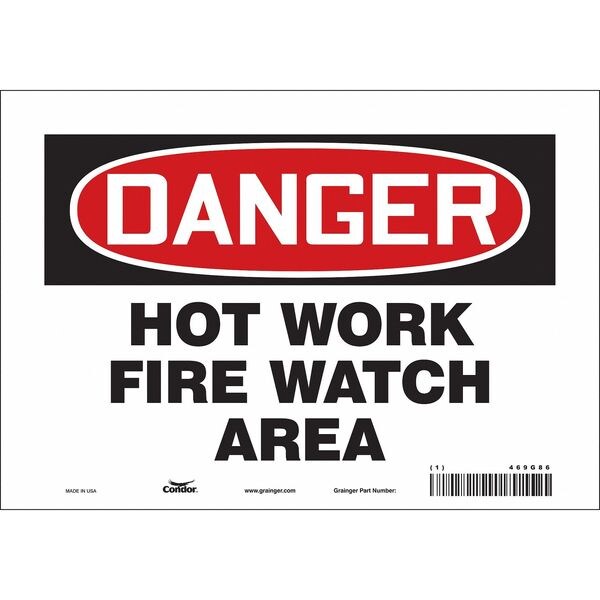 Safety Sign, Vertical Rectangle, Number of Printed Sides 1, English, Sign Format Traditional OSHA, Sign Legend Hot Work Fire Watch Area, Sign Legend Background Color White, Sign Legend Style Text