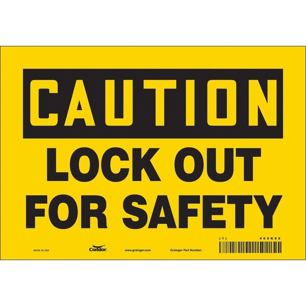 Safety Sign, Vertical Rectangle, Number of Printed Sides 1, English, Sign Format Traditional OSHA, Sign Legend Lock Out For Safety, Sign Legend Background Color Yellow, Sign Legend Style Text