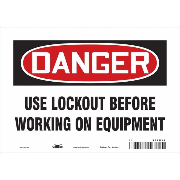 Safety Sign, Vertical Rectangle, Number of Printed Sides 1, English, Sign Format Traditional OSHA, Sign Legend Use Lockout Before Working On Equipment, Sign Legend Background Color White, Sign Legend Style Text