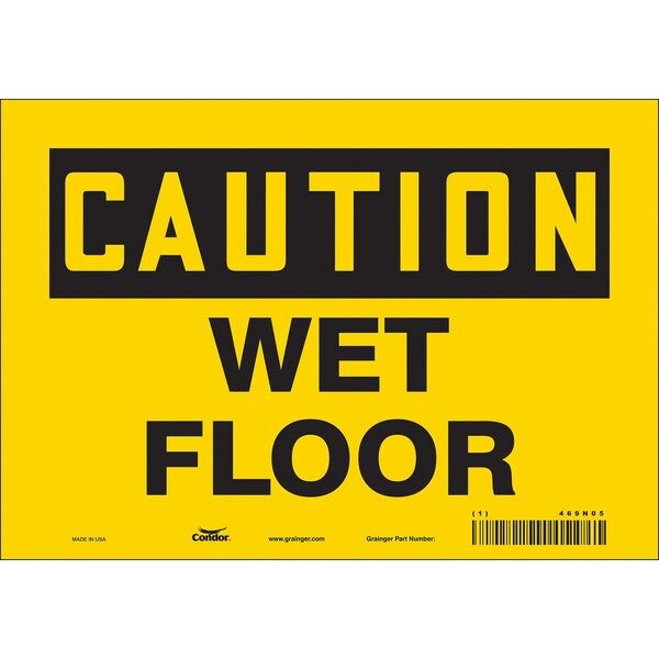 Safety Sign, Vertical Rectangle, Number of Printed Sides 1, English, Sign Format Traditional OSHA, Sign Legend Wet Floor, Sign Legend Background Color Yellow, Sign Legend Style Text
