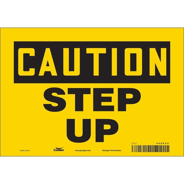 Safety Sign, Vertical Rectangle, Number of Printed Sides 1, English, Sign Format Traditional OSHA, Sign Legend Step Up, Sign Legend Background Color Yellow, Sign Legend Style Text