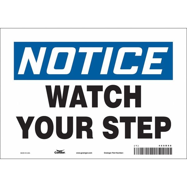 Safety Sign, Vertical Rectangle, Number of Printed Sides 1, English, Sign Format Traditional OSHA, Sign Legend Watch Your Step, Sign Legend Background Color White, Sign Legend Style Text