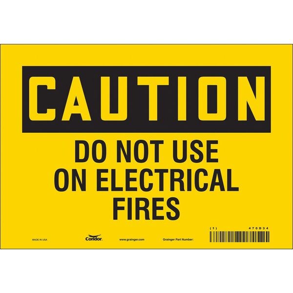 Safety Sign, Vertical Rectangle, Number of Printed Sides 1, English, Sign Format Traditional OSHA, Sign Legend Do Not Use On Electrical Fires, Sign Legend Background Color Yellow, Sign Legend Style Text