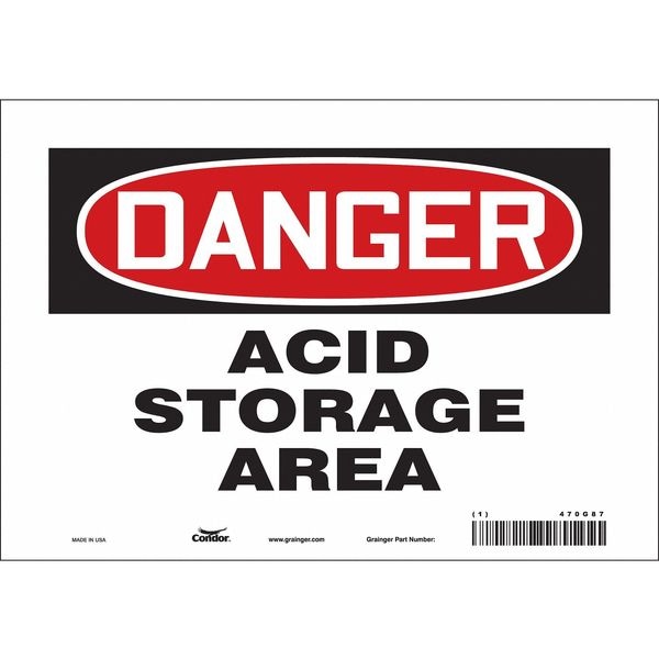Safety Sign, Vertical Rectangle, Number of Printed Sides 1, English, Sign Format Traditional OSHA, Sign Legend Acid Storage Area, Sign Legend Background Color White, Sign Legend Style Text