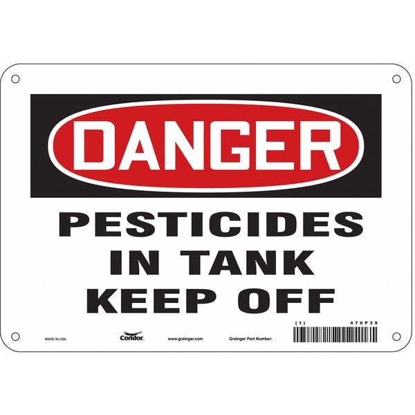 Safety Sign, Vertical Rectangle, Number of Printed Sides 1, English, Sign Format Traditional OSHA, Sign Legend Pesticides In Tank Keep Off, Sign Legend Background Color White, Sign Legend Style Text
