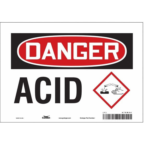 Safety Sign, Vertical Rectangle, Number of Printed Sides 1, English, Sign Format Traditional OSHA, Sign Legend Acid, Sign Legend Background Color White, Sign Legend Style Symbol and Text