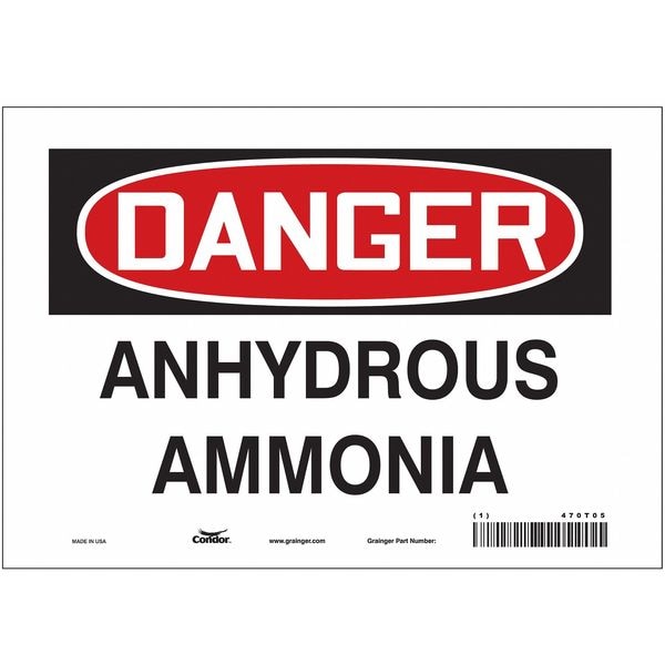 Safety Sign, Vertical Rectangle, Number of Printed Sides 1, English, Sign Format Traditional OSHA, Sign Legend Anhydrous Ammonia, Sign Legend Background Color White, Sign Legend Style Text