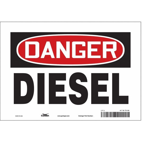 Safety Sign, Vertical Rectangle, Number of Printed Sides 1, English, Sign Format Traditional OSHA, Sign Legend Diesel, Sign Legend Background Color White, Sign Legend Style Text