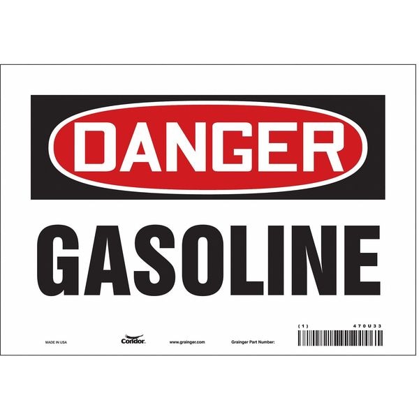 Safety Sign, Vertical Rectangle, Number of Printed Sides 1, English, Sign Format Traditional OSHA, Sign Legend Gasoline, Sign Legend Background Color White, Sign Legend Style Text