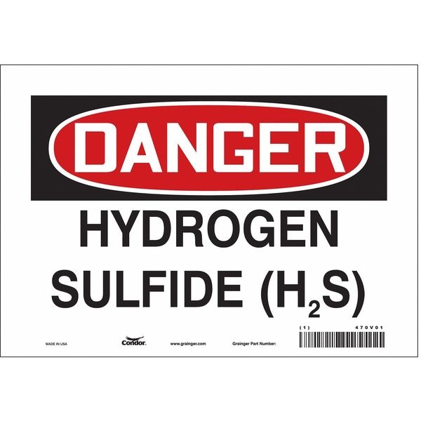 Safety Sign, Vertical Rectangle, Number of Printed Sides 1, English, Sign Format Traditional OSHA, Sign Legend Hydrogen Sulfide (H2S), Sign Legend Background Color White, Sign Legend Style Text