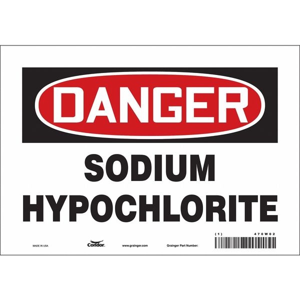 Safety Sign, Vertical Rectangle, Number of Printed Sides 1, English, Sign Format Traditional OSHA, Sign Legend Sodium Hypochlorite, Sign Legend Background Color White, Sign Legend Style Text