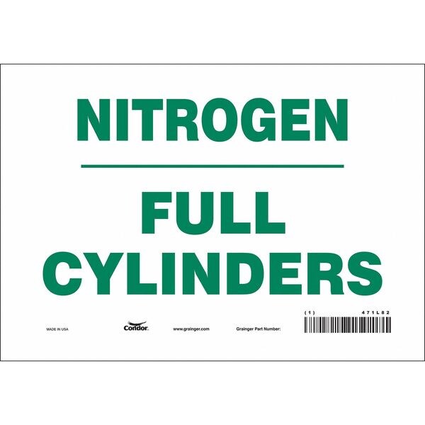 Safety Sign, Vertical Rectangle, Number of Printed Sides 1, English, Sign Format Other Format, Sign Legend Nitrogen Full Cylinders, Sign Legend Background Color White, Sign Legend Style Text