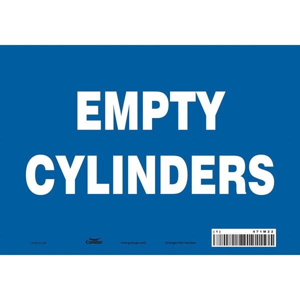 Safety Sign, Vertical Rectangle, Number of Printed Sides 1, English, Sign Format Other Format, Sign Legend Empty Cylinders, Sign Legend Background Color Blue, Sign Legend Style Text