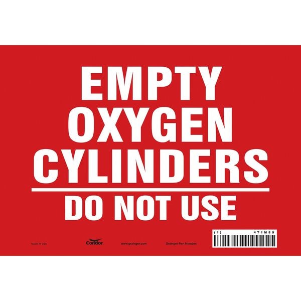 Safety Sign, Vertical Rectangle, Number of Printed Sides 1, English, Sign Format Other Format, Sign Legend Empty Oxygen Cylinders Do Not Use, Sign Legend Background Color Red, Sign Legend Style Text