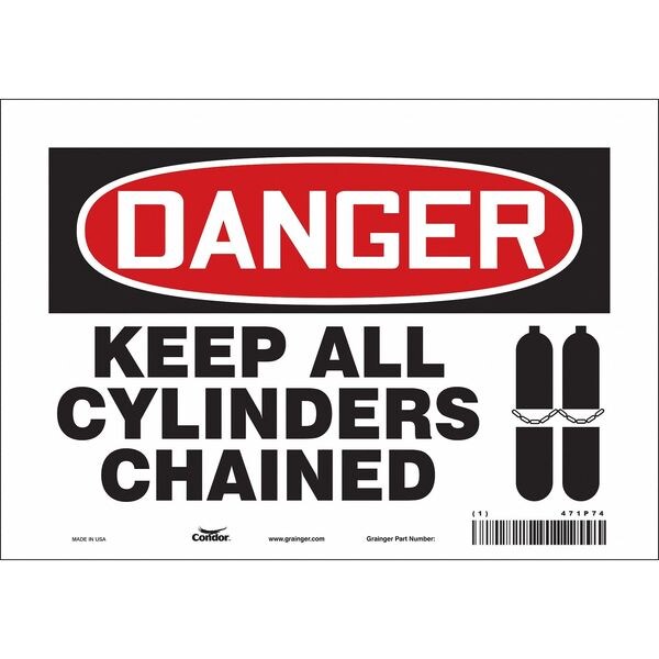 Safety Sign, Vertical Rectangle, Number of Printed Sides 1, English, Sign Format Traditional OSHA, Sign Legend Keep All Cylinders Chained, Sign Legend Background Color White, Sign Legend Style Symbol and Text