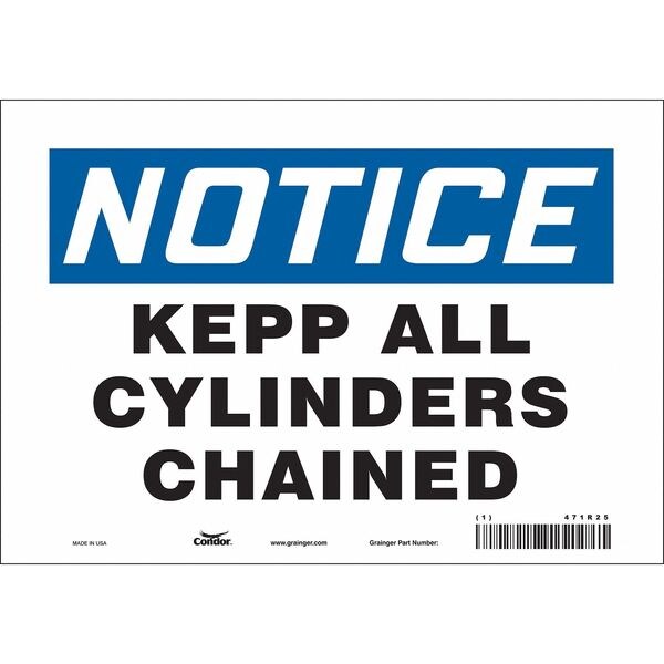 Safety Sign, Vertical Rectangle, Number of Printed Sides 1, English, Sign Format Traditional OSHA, Sign Legend Keep All Cylinders Chained, Sign Legend Background Color White, Sign Legend Style Text