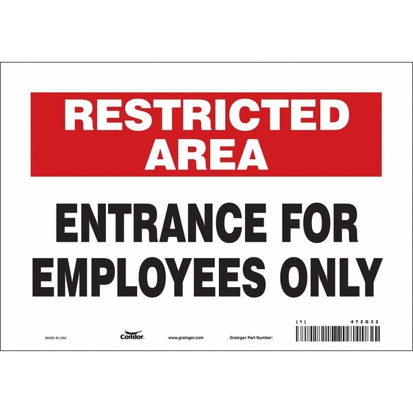 Safety Sign, Vertical Rectangle, Number of Printed Sides 1, English, Sign Format Other Format, Sign Legend Entrance For Employees Only, Sign Legend Background Color Red, White, Sign Legend Style Text