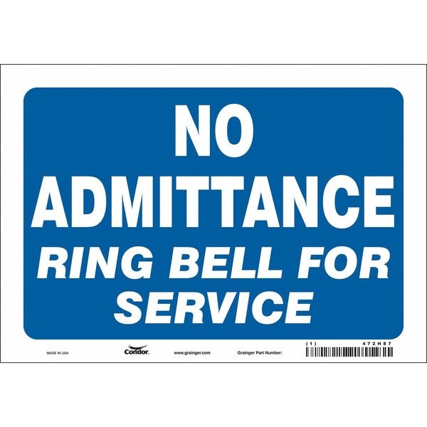 Safety Sign, Vertical Rectangle, Number of Printed Sides 1, English, Sign Format Other Format, Sign Legend No Admittance Ring Bell For Service, Sign Legend Background Color Blue, White, Sign Legend Style Text