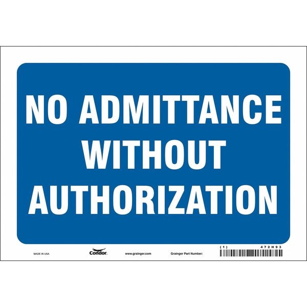 Safety Sign, Vertical Rectangle, Number of Printed Sides 1, English, Sign Format Other Format, Sign Legend No Admittance Without Authorization, Sign Legend Background Color Blue, White, Sign Legend Style Text
