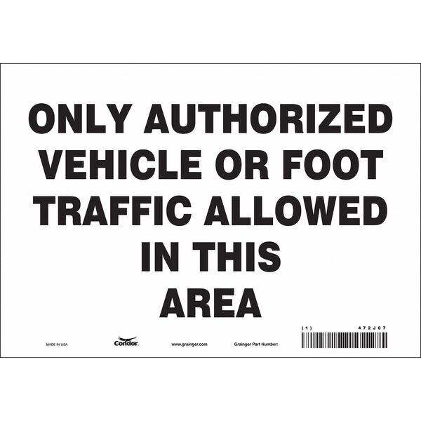 Safety Sign, Vertical Rectangle, Number of Printed Sides 1, English, Sign Format Other Format, Sign Legend Only Authorized Vehicle Or Foot Traffic Allowed In This Area, Sign Legend Background Color White, Sign Legend Style Text