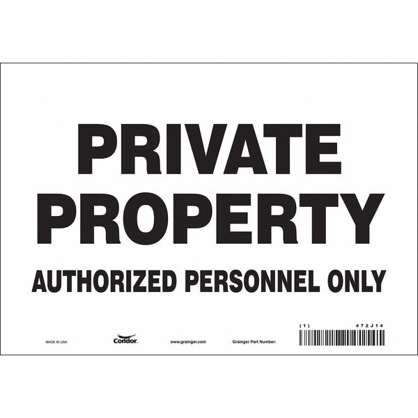 Safety Sign, Vertical Rectangle, Number of Printed Sides 1, English, Sign Format Other Format, Sign Legend Private Property Authorized Personnel Only, Sign Legend Background Color White, Sign Legend Style Text