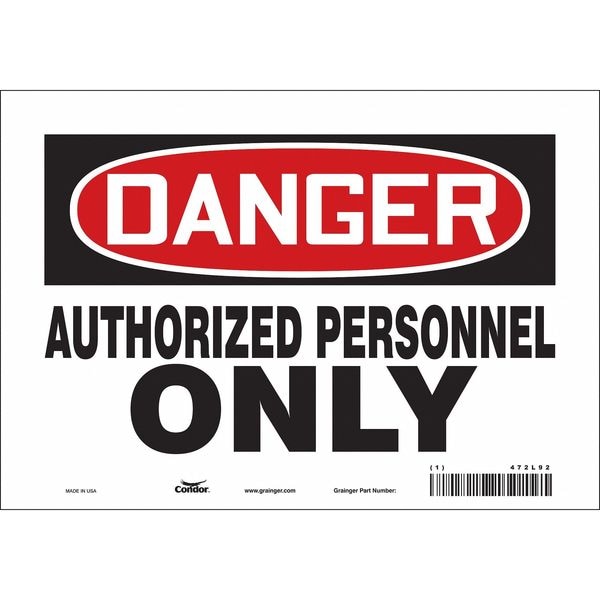 Safety Sign, Vertical Rectangle, Number of Printed Sides 1, English, Sign Format Traditional OSHA, Sign Legend Authorized Personnel Only, Sign Legend Background Color White, Sign Legend Style Text